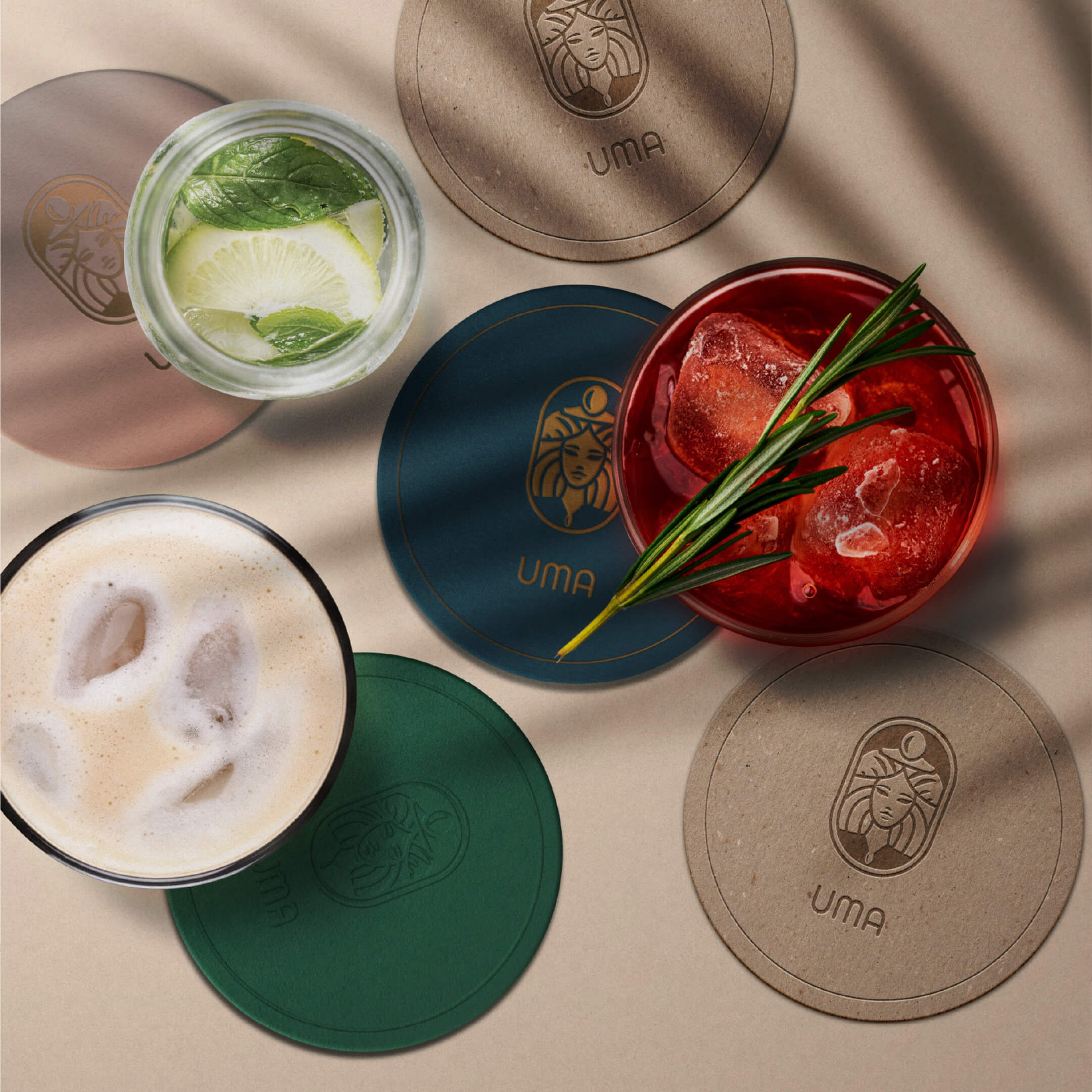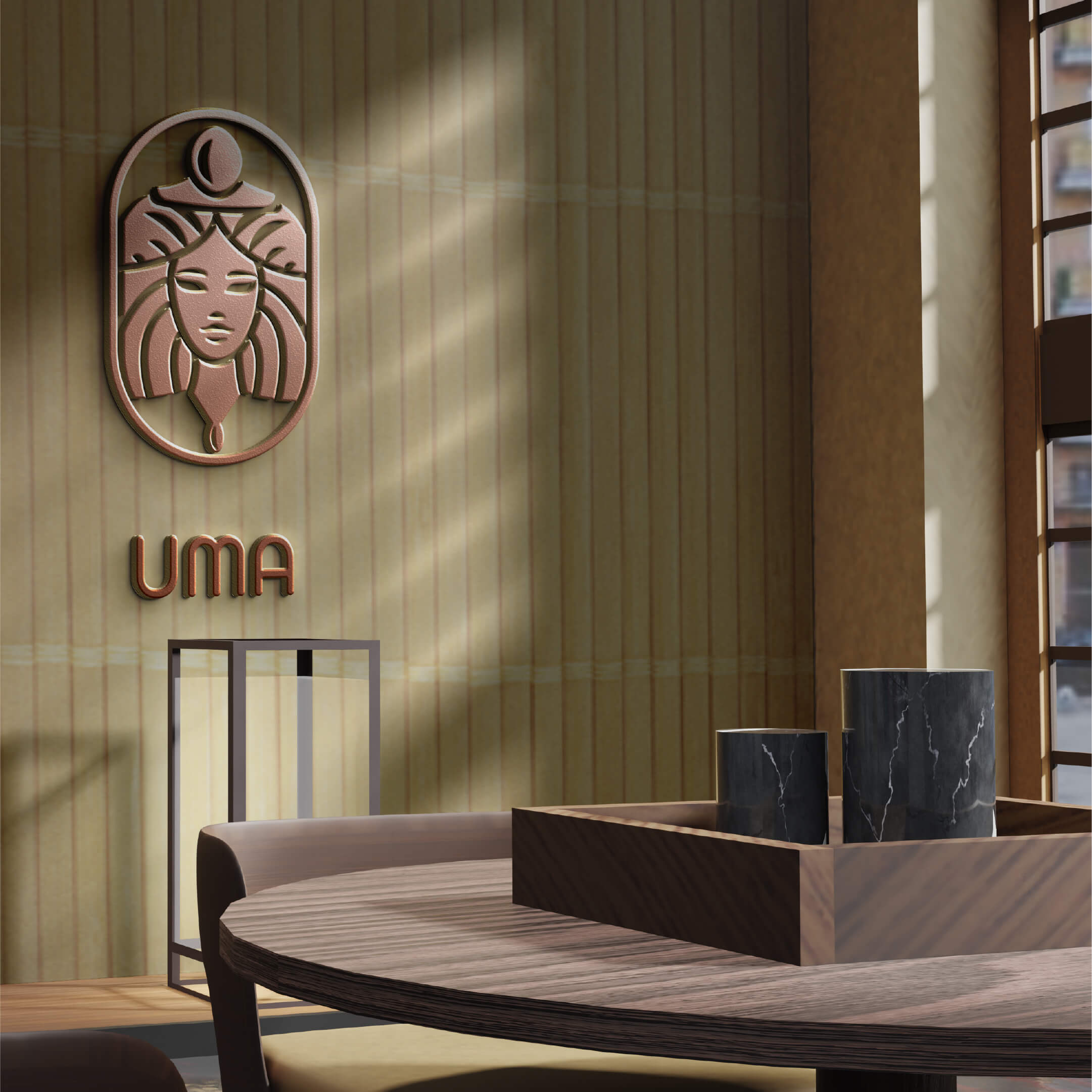 This logo serves as a visual testament to the fusion of cultural richness and contemporary vibes, embodying the spirit of the cocktail bar it represents. UMA encapsulates not just a name but a brand identity that seamlessly intertwines tradition, innovation, and a cosmopolitan flair, promising a unique and memorable experience for patrons.